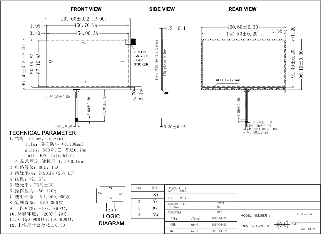 Specifikacija modula zaslona na dotik Tianfu