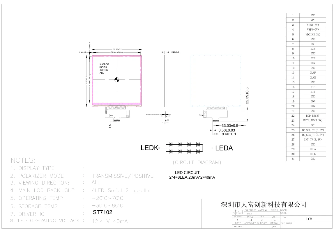 Sodoben vmesnik MIPI zagotavlja brezhibno integracijo in hiter prenos podatkov. 3,95-palčni transmisivni modul s tankim in-celičnim zaslonom na dotik s prepustnostjo in podpira delovno temperaturno območje od -30 °C do +80 °C, zaradi česar je idealen pametni zaslon za majhne, ​​prenosne in vgrajene naprave.