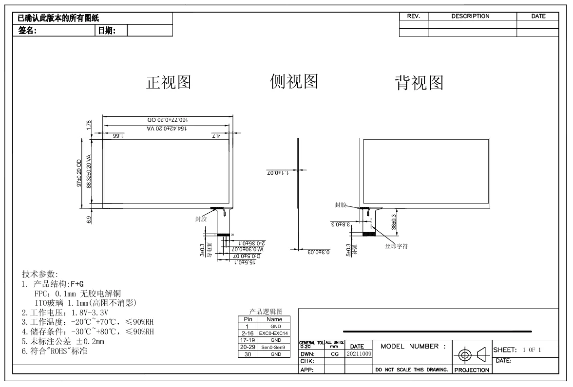 97,00 × 160,77 × 1,10 mm (obris senzorja; toleranca: ±0,20 mm)